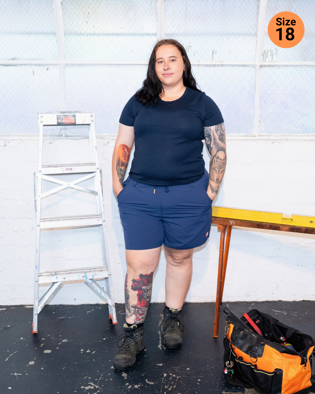 Please note, in some cases, Zadie is a bigger fit than some workwear brands, so if you're between sizes, maybe size down.